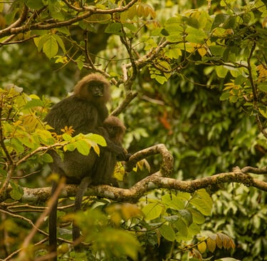 They are home to many threatened and endemic species. One of the denizens that inhabits amidst these multiple layers of green forests is an outstandingly shy colobine - Nilgiri Langur (Semnopithecus johnii). Easy to distinguish them with their black fur which notoriously shines when the light falls on it. While their crown has a reddish or golden brown fur, which again is quite an attractive feature. Although they are distributed throughout various regions - from semi-evergreen, montane temperate green to riverine forests, their preferred habitat is evergreen forests due to the abundance of leaves. And they are highly arboreal.