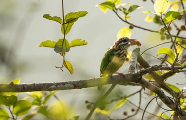 White-cheeked Barbet (Psilopogon viridis), an endemic to the Western Ghats is also seen around the Hosakote lake.
